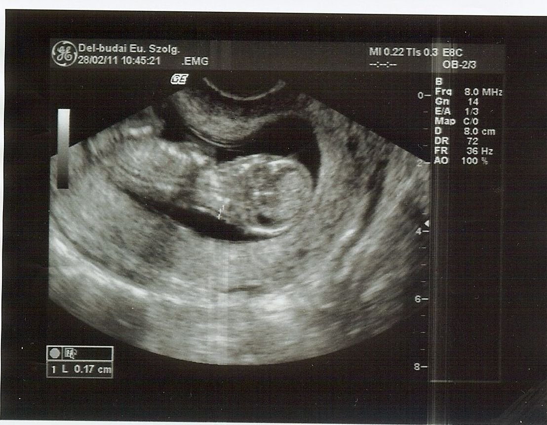 Végre sor kerülhetett a 12. hetes UH vizsgálatra, ami egy genetikai szűrés is egyben: minden megvan-e, jól fejlődik-e, nincsenek-e dawn kórra utaló jelek….stb.